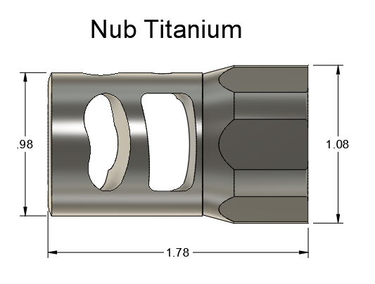 Featuring a sleek black nitride finish, the Nub Titanium not only looks great but provides enhanced durability and corrosion resistance. Its 0.980-inch diameter and 1.78-inch length, combined with 5/8-24 threading, allow for easy installation and a perfect fit, ensuring seamless integration with your setup.
