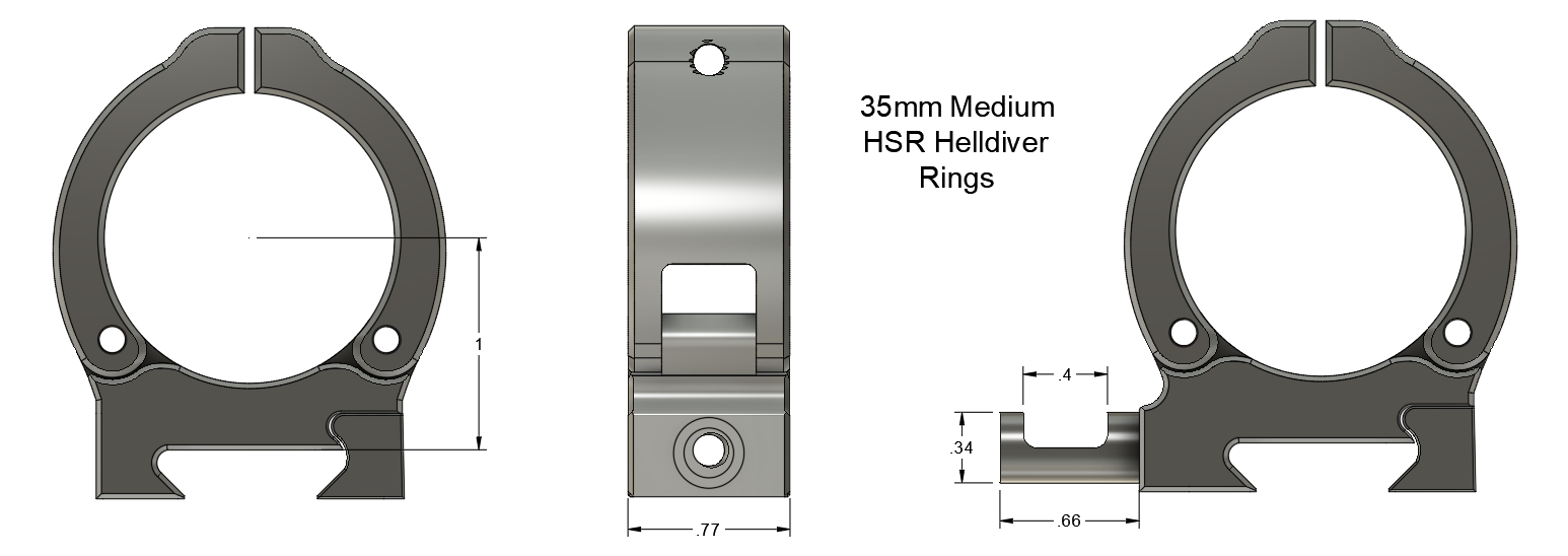 Combining the ideal aspects of low and medium-height designs, these rings provide the perfect mounting height to match your shooting preferences. Despite their robust construction, they offer a lightweight solution at just 3.5 oz across 30mm, 34mm, and 35mm variants, with a thickness of 0.769 inches.
